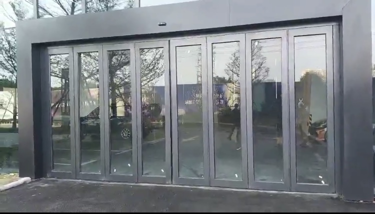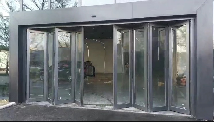 電動折疊門是用于車間廠房、倉庫等地方的大門,常常在墻體洞口兩側(cè)和頂部空間位置不夠的情況下,獨(dú)特研制的一種新型門體,可分為四扇折疊,六扇折疊等多種形式。此門體具有 :手動、電動、遙控、防沙塵、耐腐蝕等性能